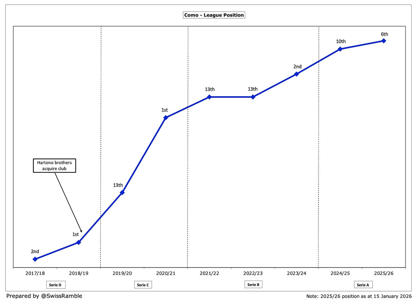 Clearly, much of Como’s success has been built on the substantial financial support from their owners, the Hartono brothers, who bought the club in 2019.